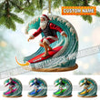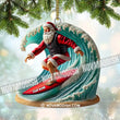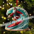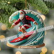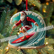 Custom Name Santa Surfing Ornament, Christmas Gift Decoration