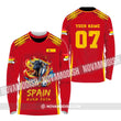 Unisex Shirt Custom Name And Number Euro 2024 Football Spain Polo Hoodie Long Sleeve T-Shirt / S