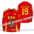 Unisex Shirt Custom Name And Number Spain Football Polo Euro 2024 Hoodie Long Sleeve T-Shirt / S