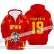 Unisex Shirt Custom Name And Number Spain Football Polo Euro 2024 Hoodie Long Sleeve Zipper / S