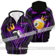Unisex Shirt - Custom Name And Team Name Billiard Shirt Purple Line And Crown