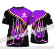 Unisex Shirt - Custom Name Shirt - Team Name Shirt, Purple Bowling Ball Fire