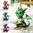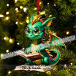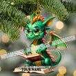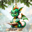 Custom Name Dragon Reading Books Ornament, Christmas Gift for Book Lover
