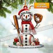 Custom Name Snow White Baseball Ornament, Snowman Christmas Decoration