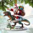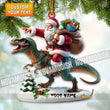 Santa Riding A Dinosaur Christmas Ornament, Personalized Ornament