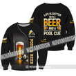 Unisex Shirt - Custom Life Is Better With A Beer And A Pool Cue 3D Shirt