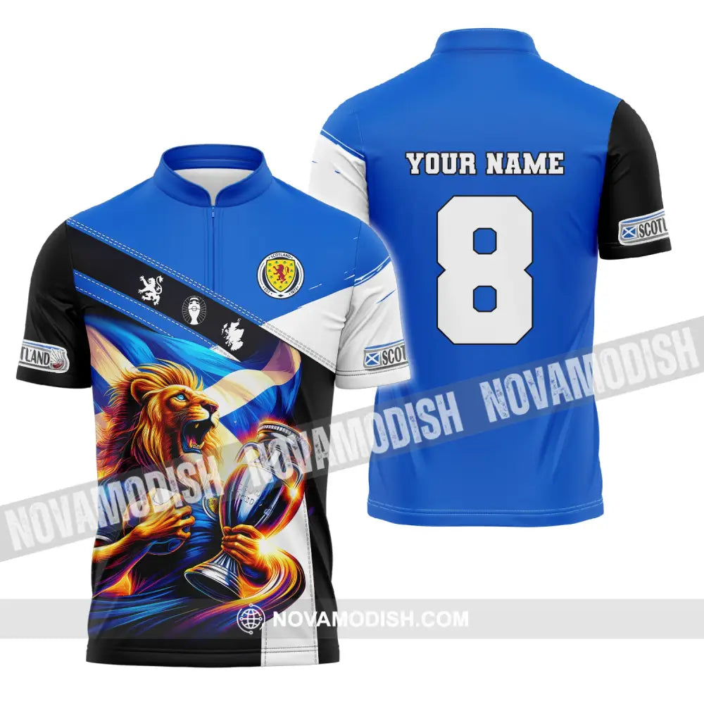 Unisex Shirt Custom Name And Number Football Scotland Polo Long Sleeve Euro 2024 Zipper / S T-Shirt