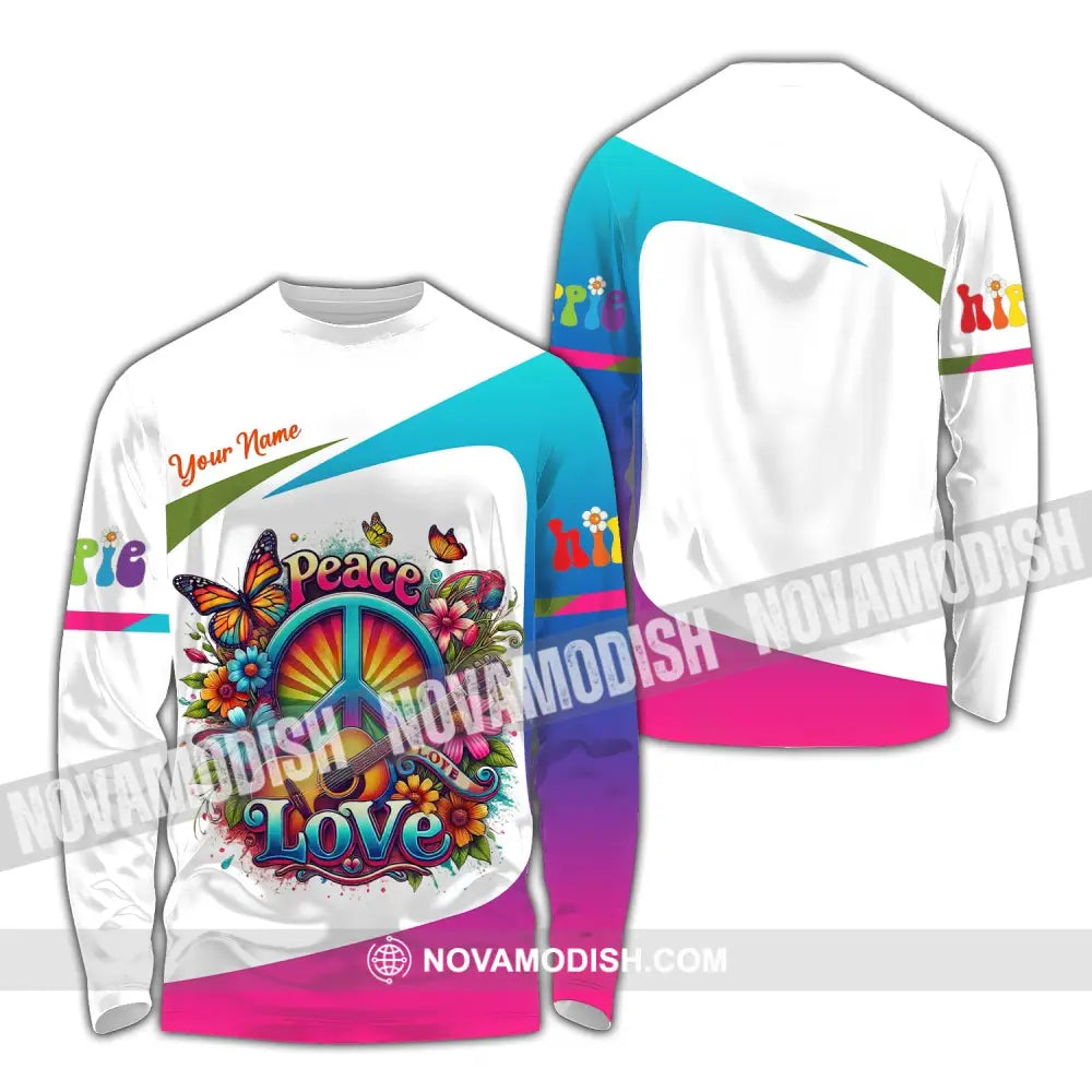 Unisex Shirt, Custom Name Hippie T-Shirt, Hippie Hoodie Long Sleeve Shirt, Peace Love Shirt
