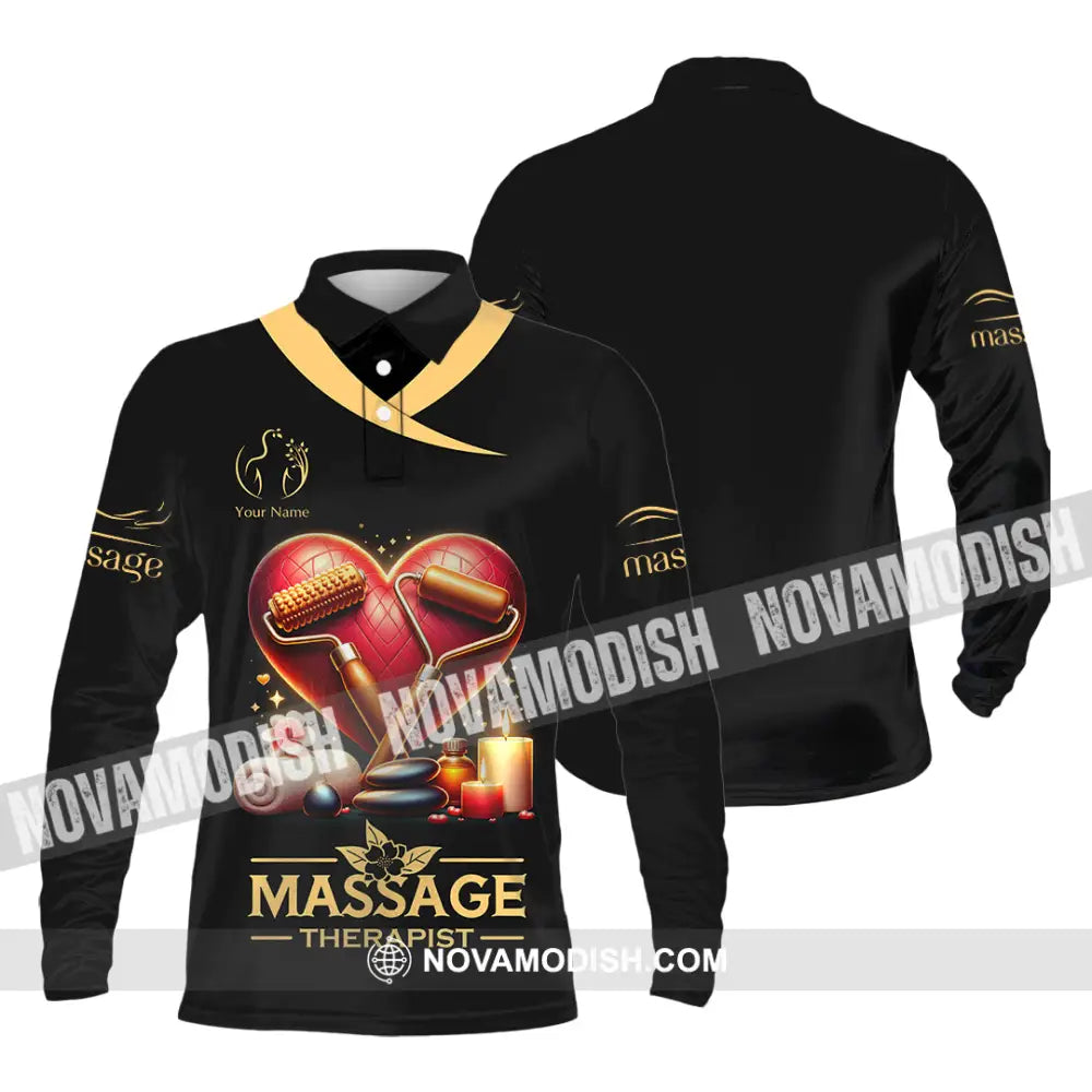 Unisex Shirt, Custom Name Massage Therapist Shirt, Massage Therapist Long Sleeve Polo Shirt