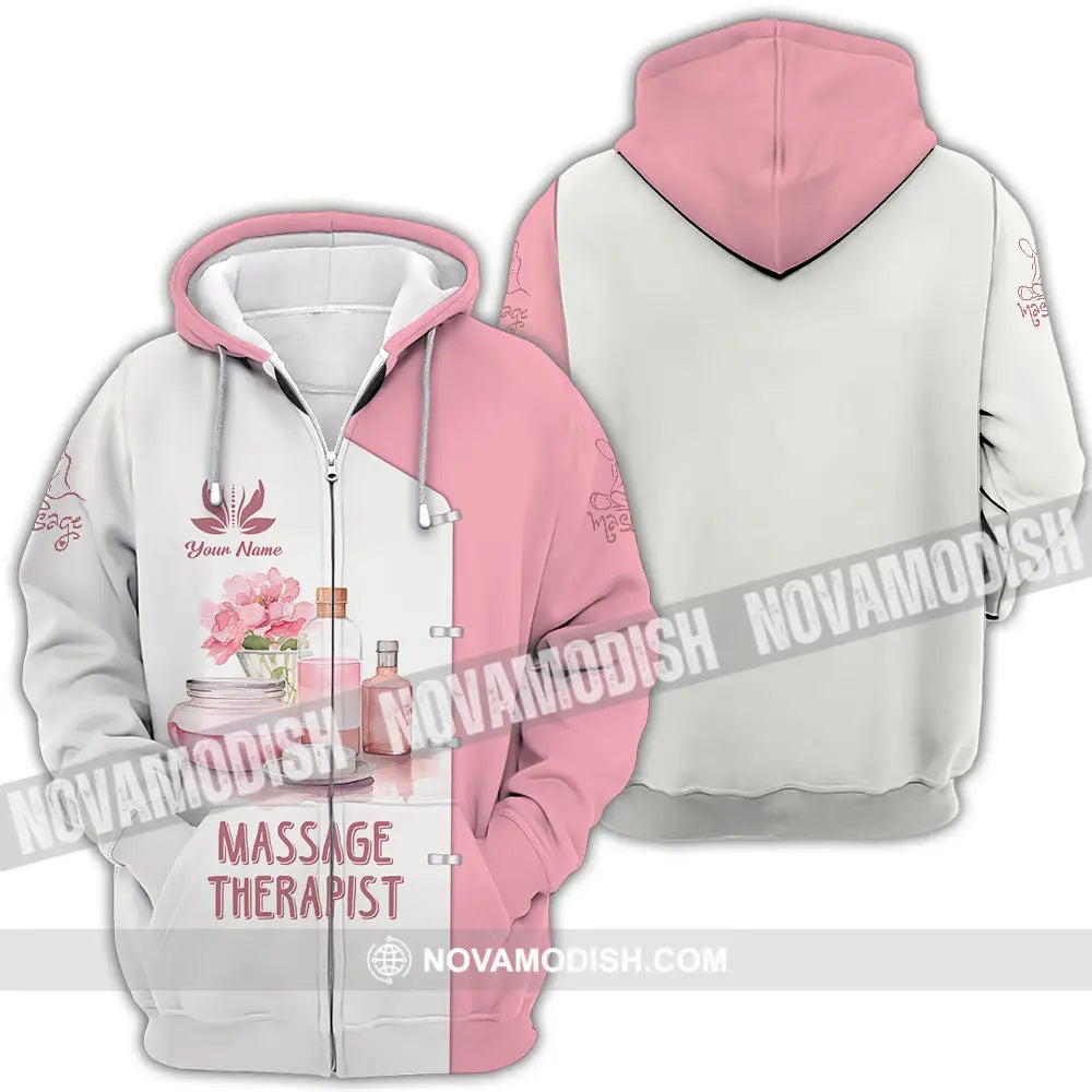 Unisex Shirt - Custom Name Massage Therapist Shirt, White And Light Pink