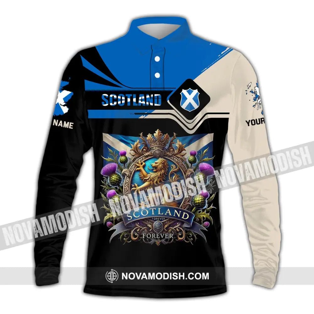 Unisex Shirt, Custom Name Scotland Shirt, Scotland Polo Long Sleeve, Scotland Gift