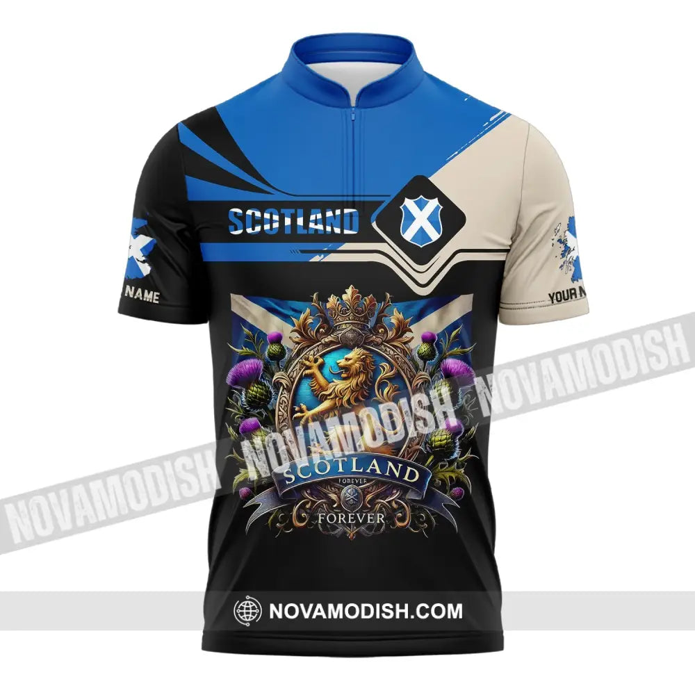 Unisex Shirt Custom Name Scotland Polo Long Sleeve Gift Zipper / S T-Shirt