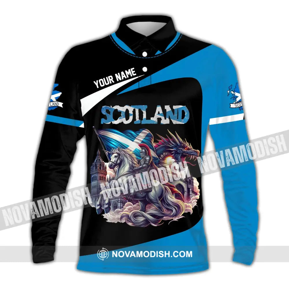 Unisex Shirt, Custom Name Scotland Shirt, Scotland Polo Long Sleeve, Scotland Gift