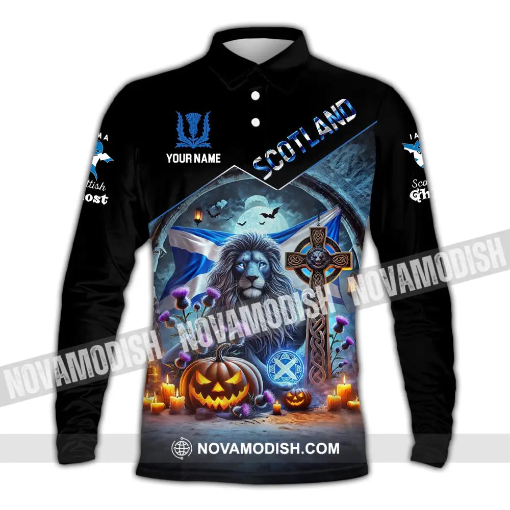 Unisex Shirt - Custom Name Scottish Ghost Long Sleeve Polo / S T-Shirt